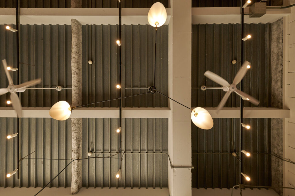 倉庫ならではの高い天井は、あえて躯体を活かすことで、開放感と個性を兼ね備えた空間に。